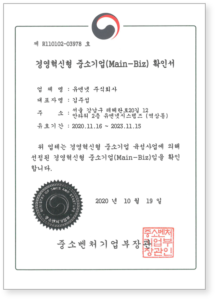 – 기업부설연구소 인가, 경영혁신형 중소기업 선정