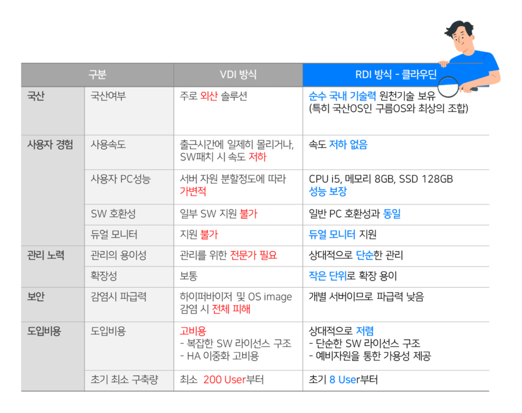 ’클라우딘’은 VDI기반의 DaaS서비스의 단점을 해결하고자 RDI 방식을 채택