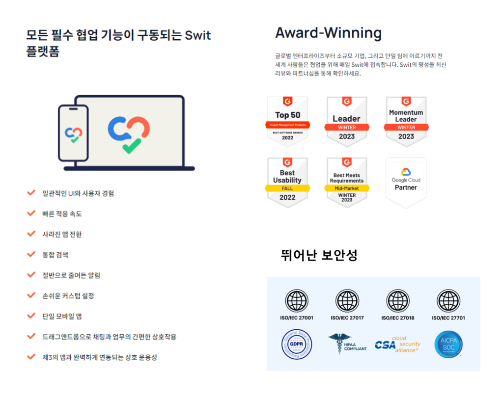 솔루션 3. SaaS 형태의 협업도구 'GWS' 와 'Swit'