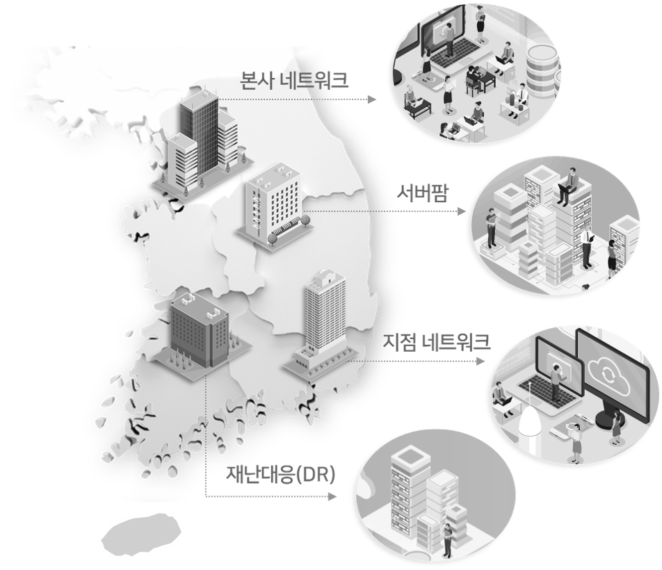 공공, 금융, 의료 등 다양한 영역에 네트워크 구축, 운영, 유지관리 서비스를 제공하고 있습니다.