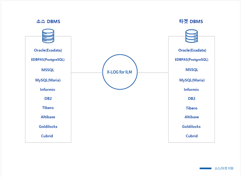 X-LOG for IDL(Initial Data Loader)는 DBMS 시스템에 대한 시스템 교체, 업그레이드 및 이기종 DBMS간 데이터 이관시 별도의 스토리지 공간을 사용하지 않고 소프트웨어 에이전트를 통해 초기 데이터를 이관해 줄 수 있는 최적의 솔루션