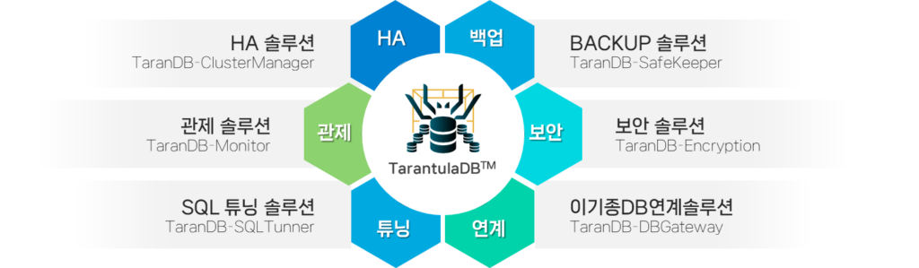 타란툴라DB는 PostgreSQL을 기반으로 기업에서 요구하는 핵심기능과 국내 최고의 기술지원을 제공하는 ‘토탈 엔터프라이즈 DB솔루션’ 입니다.